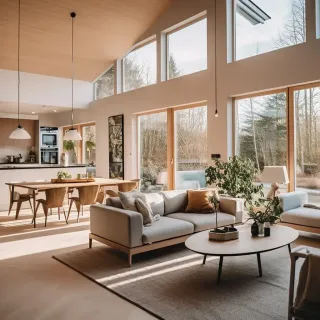 Pour un espace convivial, les teintes naturelles comme le bois ou les tons pastel sont idéales. Pour un salon contemporain, privilégiez des fenêtres en aluminium noir ou gris.